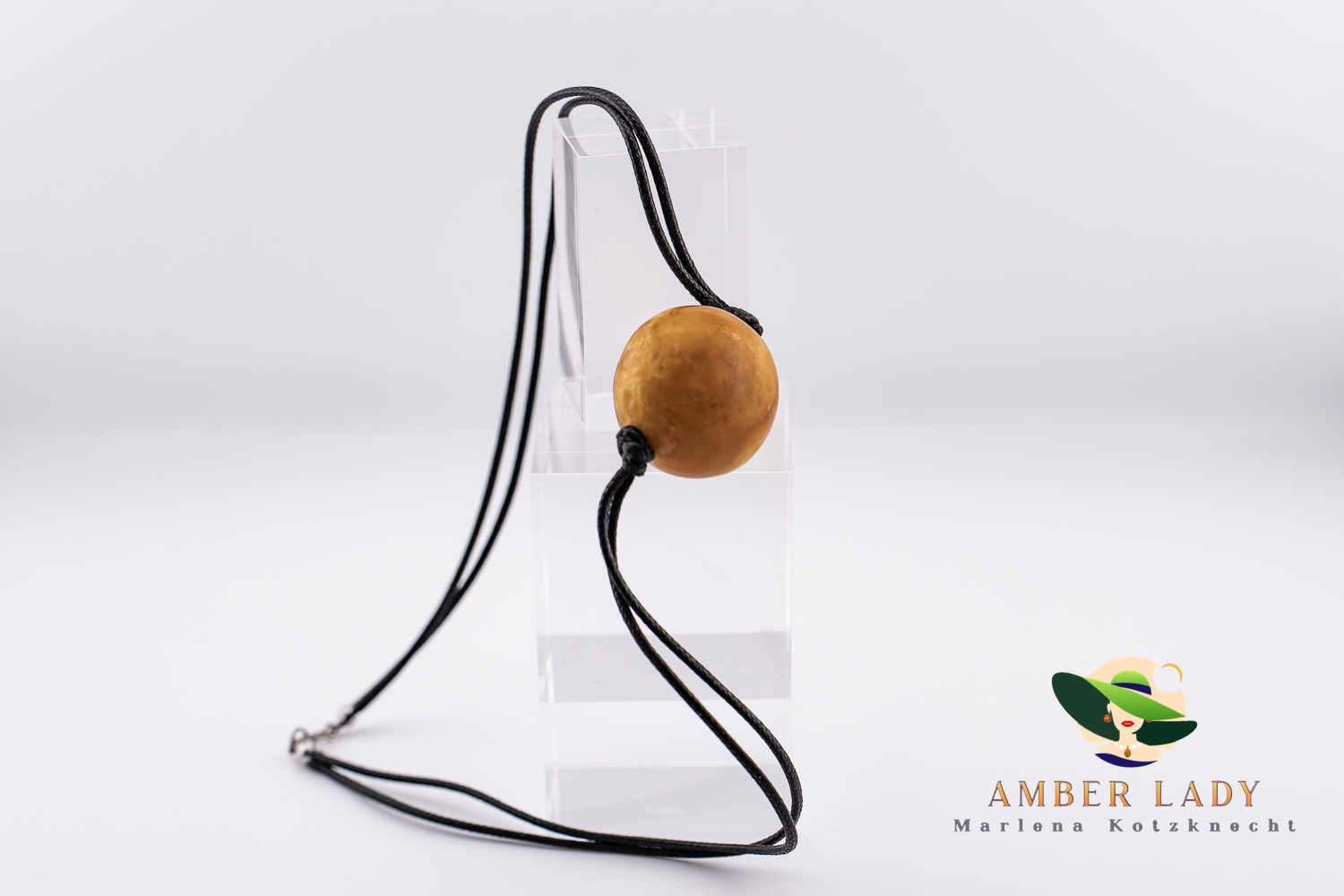 Amber Necklace – Large Round Baltic Amber on Black Jewelry Cord