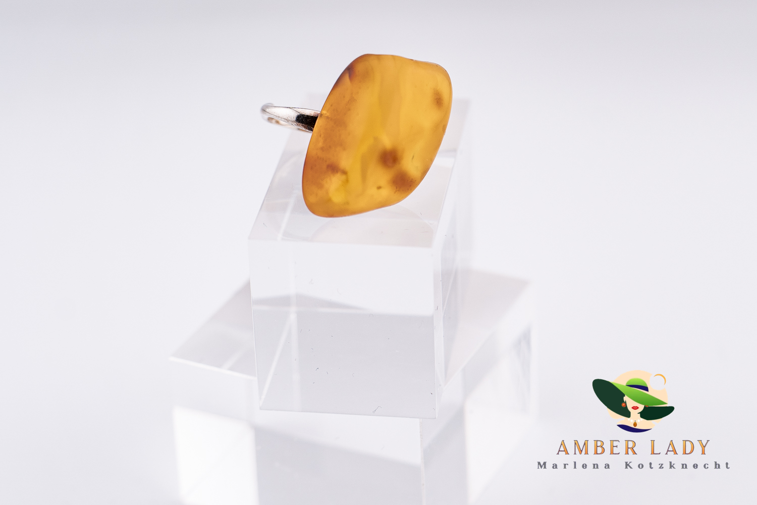Natural Baltic amber has been treasured for centuries as a stone of luck, protection, and positive energy. Its warm sunny-milky and cognac hues give the jewelry a sense of lightness, freshness, and distinct character. This ring draws attention, highlights individuality, and adds confidence to the wearer.