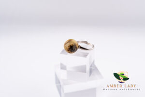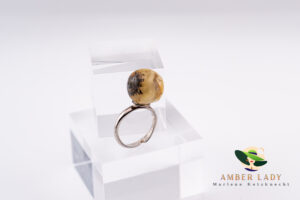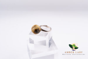 The amber has a nearly round yet unusual shape, making it a distinctive gemstone that stands out from traditional jewelry designs. Its irregularity enhances its authenticity, ensuring that each ring is a one-of-a-kind treasure of nature. For women who appreciate individuality and natural elegance, this amber ring becomes not just an accessory, but a statement piece.