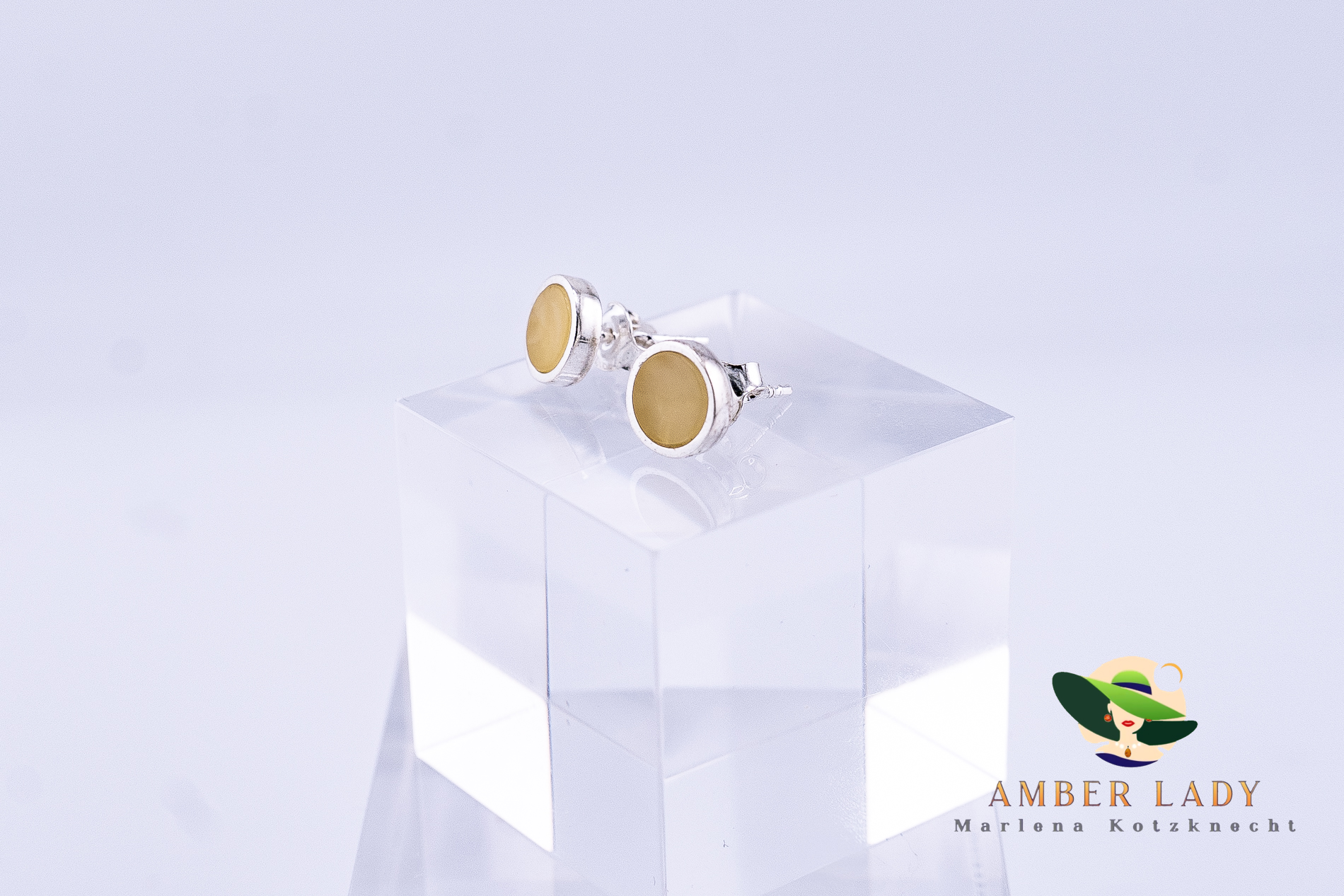 Baltic Amber Stud Earrings with Matte Milky Amber in 925 Sterling Silver