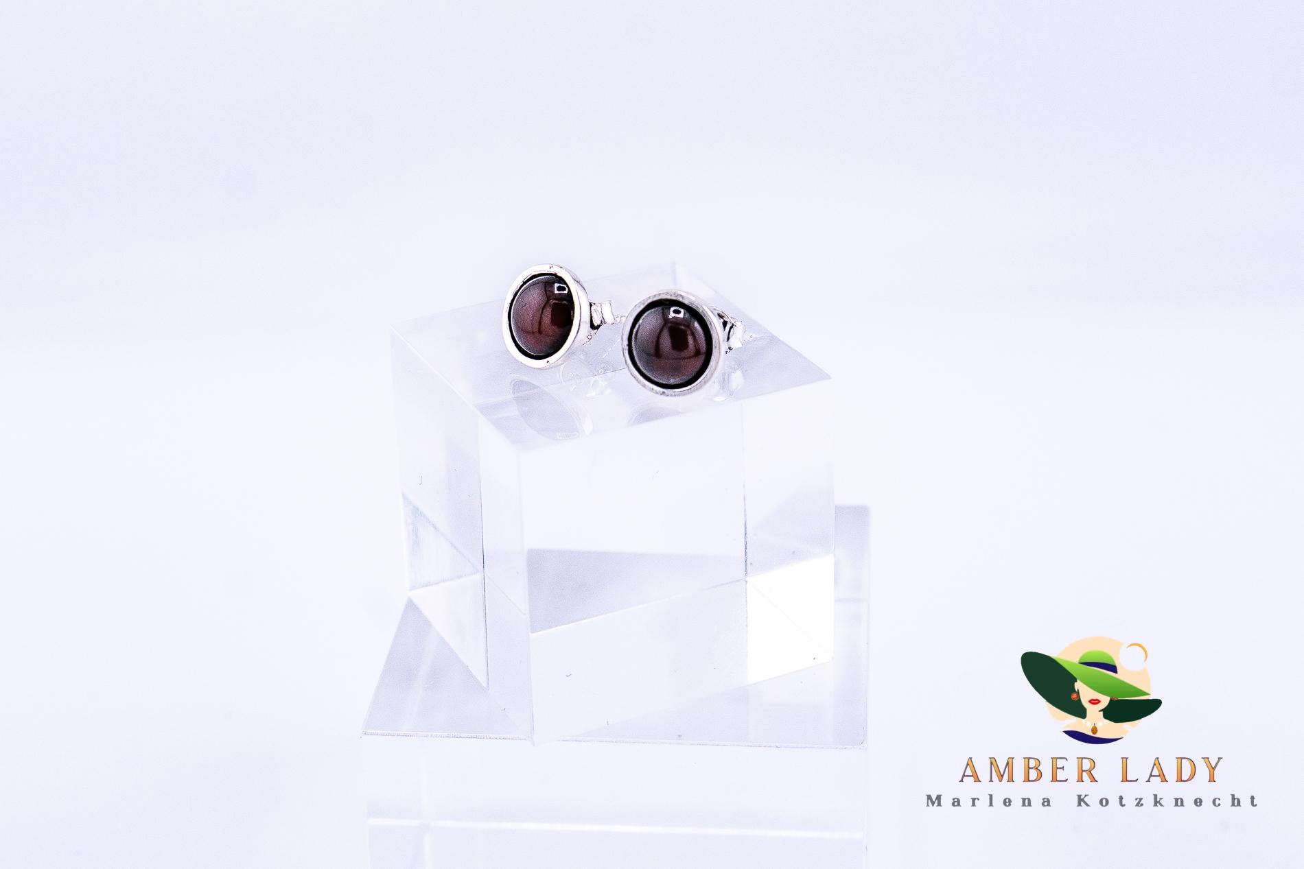 These round stud earrings feature Baltic amber in a deep cherry shade, set in elegant 925 sterling silver. The rich, warm color of the amber draws attention and adds a distinctive touch to any outfit, while the silver setting enhances the stone’s natural glow. Their classic round shape makes the earrings timeless and versatile, perfect for both everyday wear and special occasions.