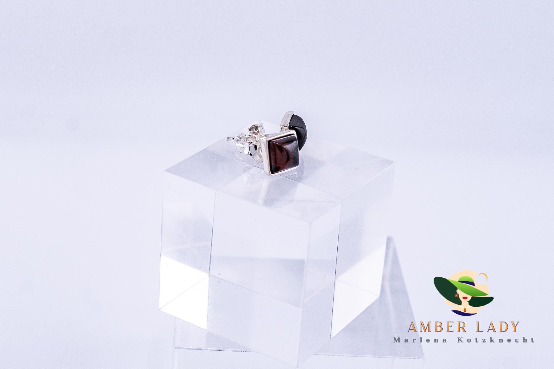 These stud earrings feature Baltic amber in a deep cherry shade, set in a modern square 925 sterling silver frame. The rich, warm tone of the amber draws attention, while the geometric silver setting adds a contemporary and elegant touch. This combination of classic gemstone beauty with a modern design makes the earrings not only a stunning accessory but also a statement of individuality.