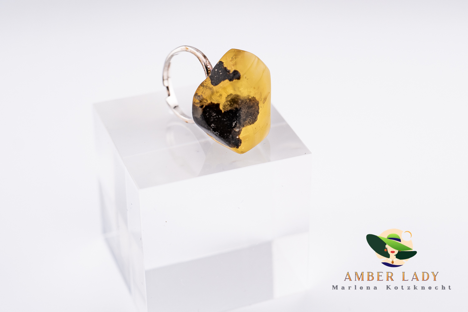 Citrine amber has long been valued as a stone of luck, protection, and positive energy. In this ring, the plant inclusion and the cloud-like internal structure give it an extra character, turning it into jewelry that not only captivates with its appearance but also tells a natural, personal story.