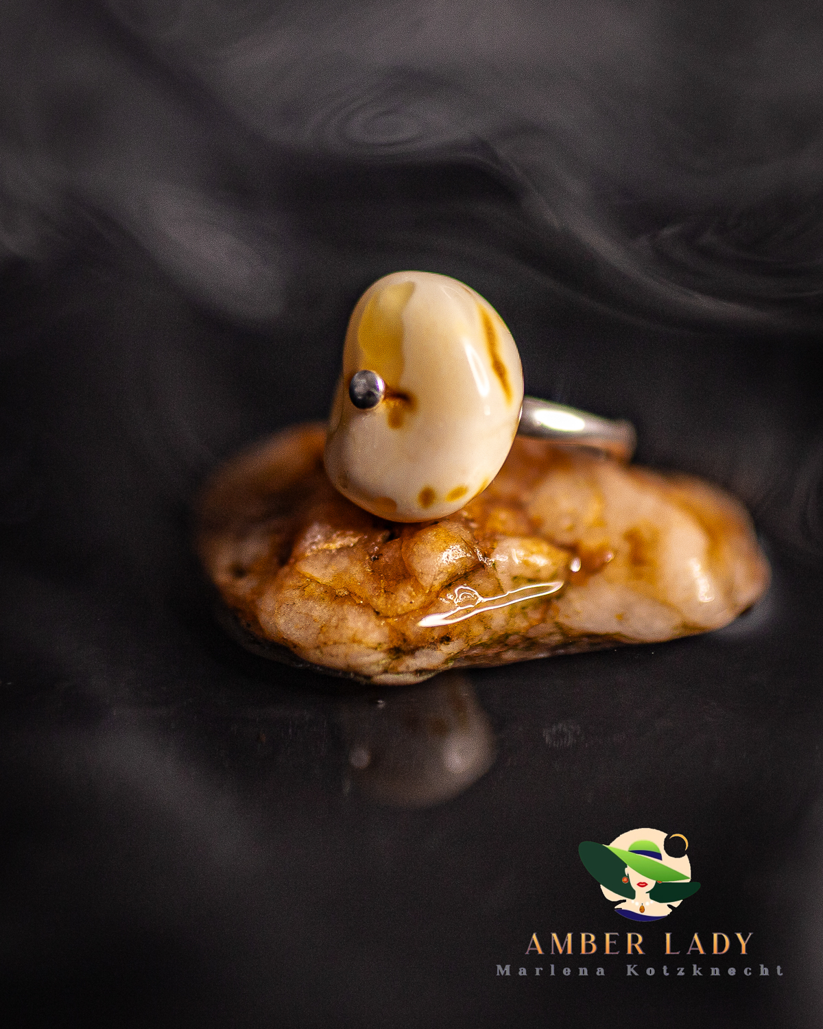 The centerpiece of the ring is genuine amber – a gemstone full of warmth, history, and extraordinary energy. Each piece of amber is one of a kind, which means your ring will be absolutely unique. Its golden hue reflects the light beautifully, creating enchanting shades and highlights that catch the eye and give the jewelry its distinctive character.