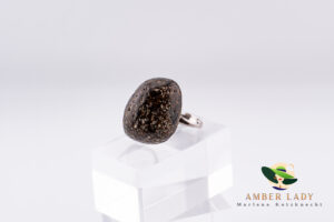 For centuries, Baltic amber has been cherished not only for its beauty but also for its symbolism, representing luck, protection, and positive energy. The combination of a dark chocolate hue with subtle black specks and natural amber bark gives this ring a distinctive character, catching the eye and emphasizing the individuality of the wearer.