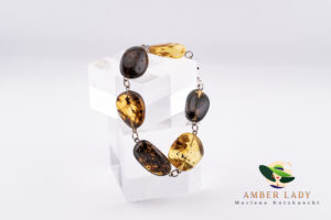 This exceptional bracelet combines the natural charm of Baltic amber with the elegance of sterling silver (925). With a length of 17 cm, it fits the wrist perfectly, becoming a subtle yet striking element of any outfit.
