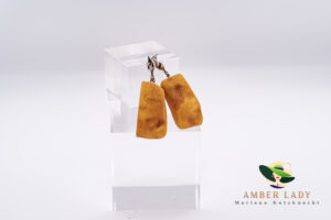 The amber captivates not only with its color but also with its natural amber bark, giving the earrings a distinctive, rustic appeal. Each amber slice is unique, making the jewelry truly one-of-a-kind. The delicate, dangling design adds a sense of lightness, allowing the earrings to hang gracefully near the face.