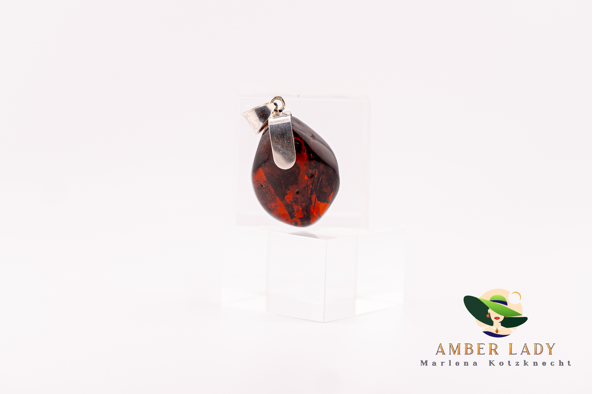 Natural baltic amber pendant with sterling silver, total longth 5,5 cm.