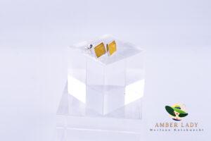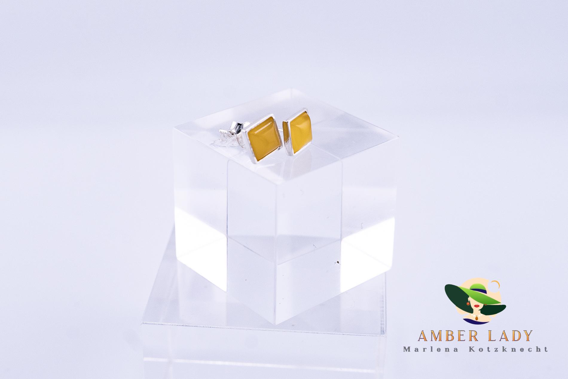 Square Stud Earrings with Sunny Baltic Amber in 925 Sterling Silver