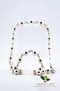 The total length of the necklace is 44 cm, making it suitable for wearing directly on the neck or over a blouse or top with a neckline. The uniform silver beads give the necklace a classic yet modern look, making it versatile and suitable for a wide range of styles – from casual everyday wear to elegant evening outfits.