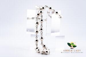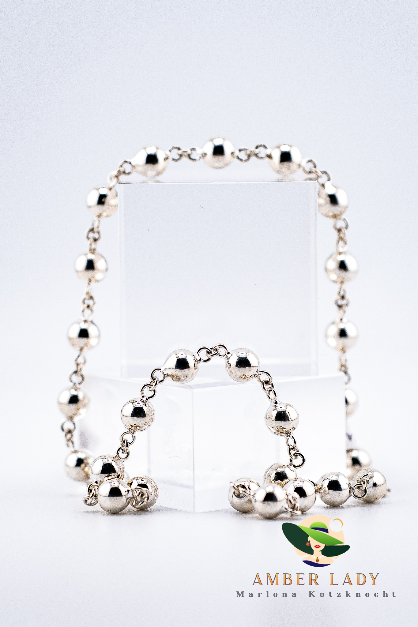 This exceptional necklace is perfect for those who appreciate timeless elegance and subtle style. Crafted from 925 sterling silver, it impresses with its durability, high-quality craftsmanship, and beautiful shine that highlights its sophisticated character. The necklace is composed of evenly sized, carefully crafted silver beads, creating a harmonious and minimalist design.
