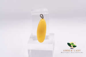 Baltic amber has been treasured for centuries not only for its aesthetic appeal but also for its symbolic meaning – it is believed to bring luck, protection, and positive energy. The elongated shape in creamy-yellow tones ensures that the pendant draws attention and highlights the individuality of the wearer.